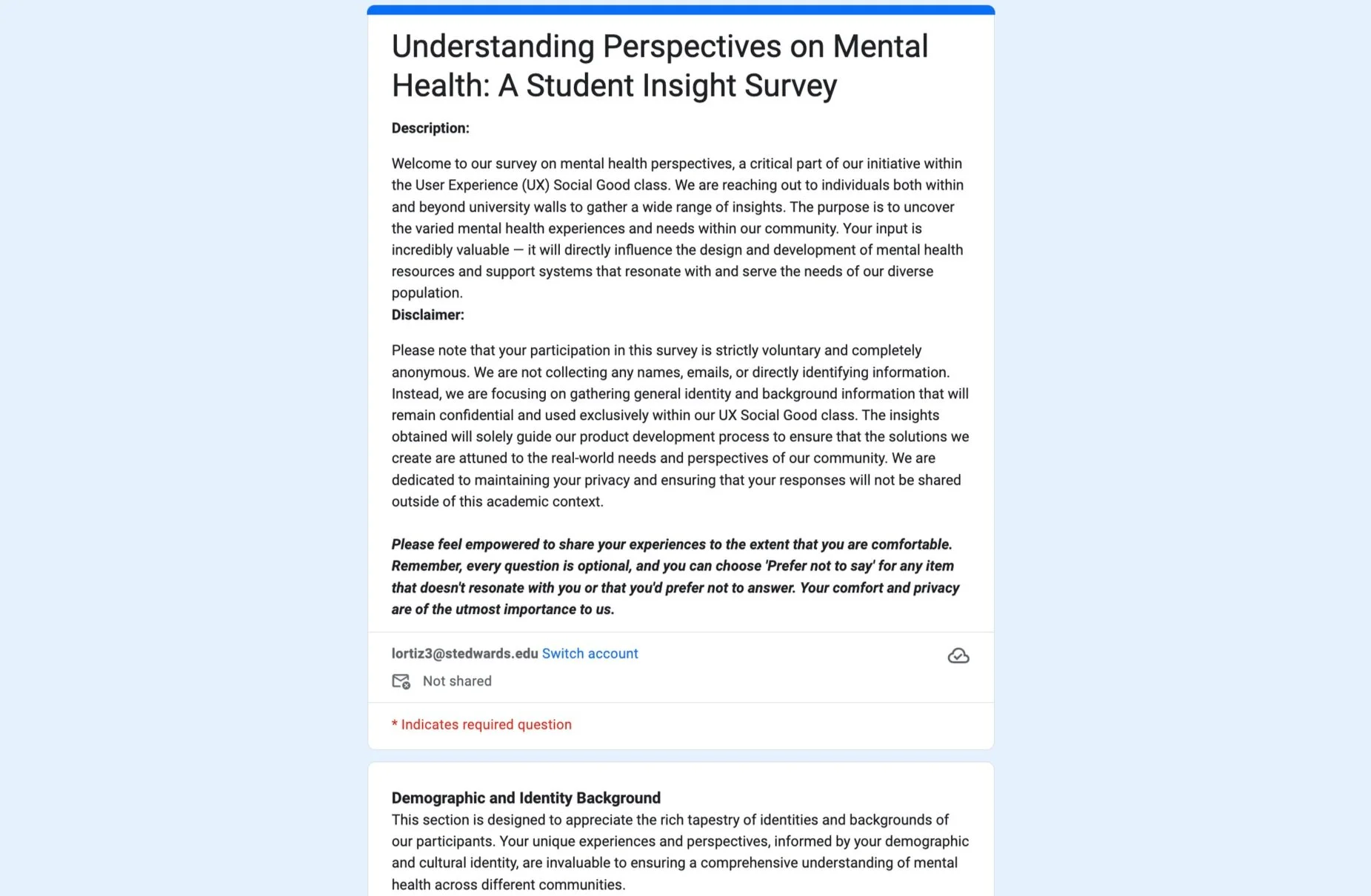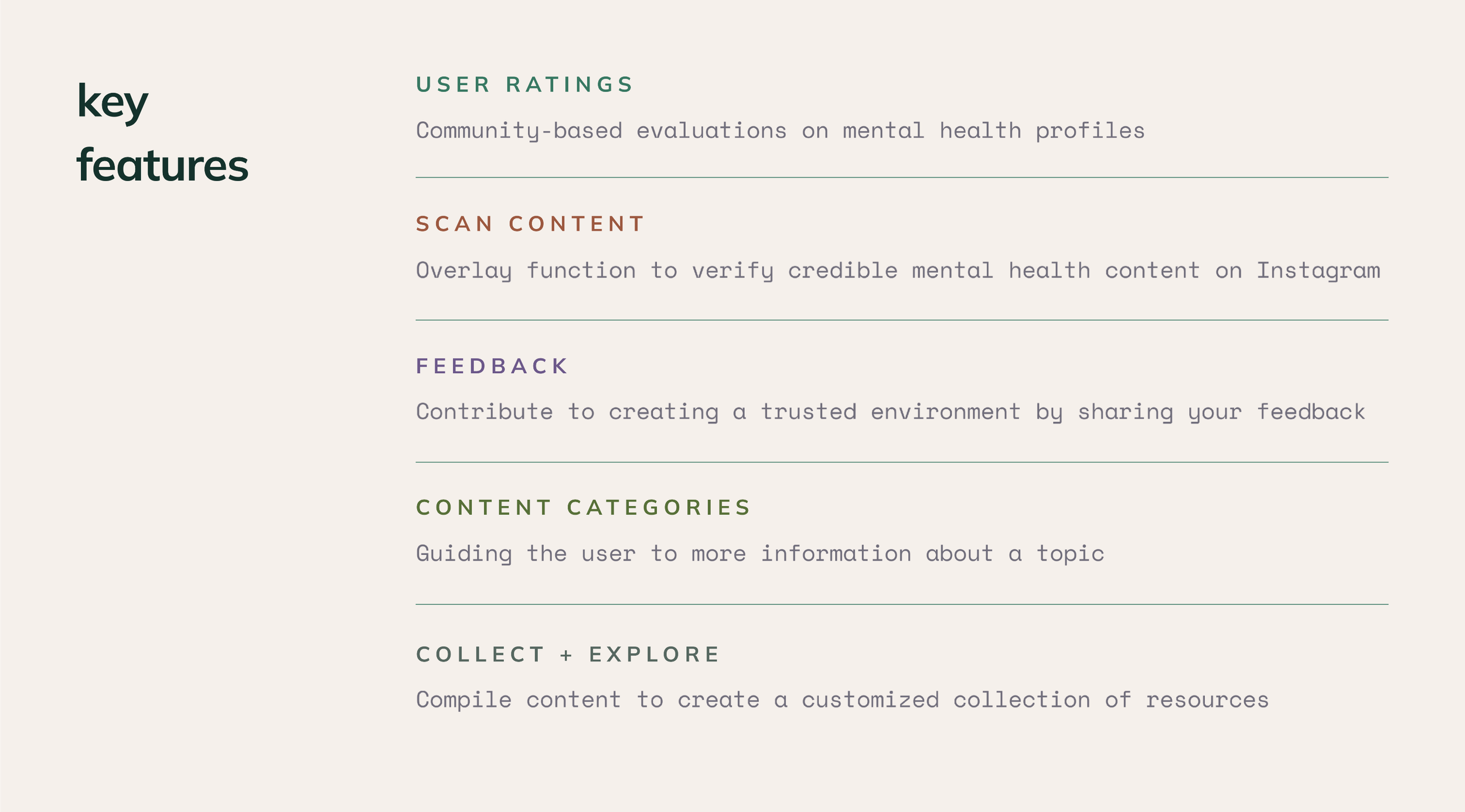 Our team dedicated itself to developing a product addressing the crucial social issue of mental health. Through surveying 23 individuals, we identified a prevalent problem: users lack trust in mental health content and claims on social media. There is a common emphasis on making people feel more secure in using digital platforms both in terms of cybersecurity and reliability of information. People have cited needing a way to verify the accuracy of information so they can trust the resources amidst all the overwhelming misinformation out there.
