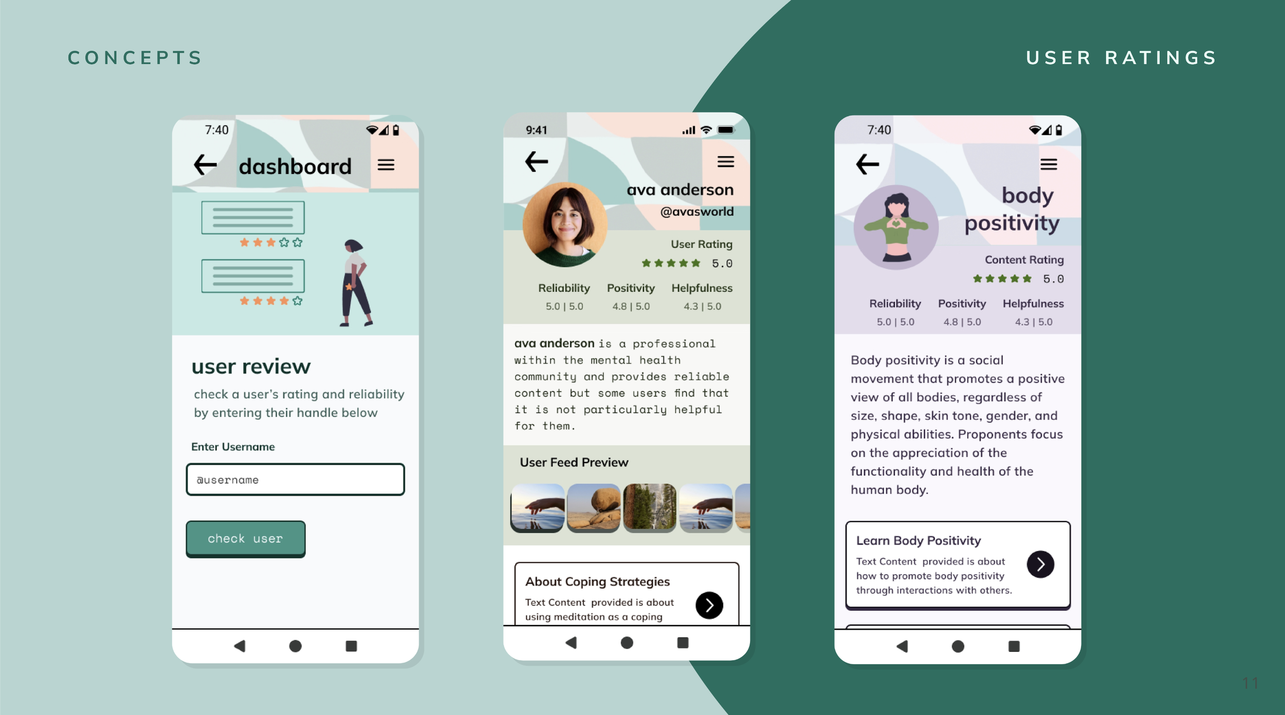 Our team successfully created a safe space for users, addressing their need to trust accurate information amidst the overwhelming misinformation about mental health found on social media.